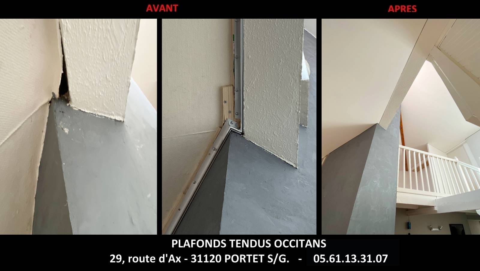 Si la configuration de ce chantier ressemble à votre intérieur et à votre problématique, prenez contact avec notre secrétariat pour un devis gratuit à domicile. Votre artisan professionnel, Plafonds Tendus Occitans se déplace à Colomiers, Toulouse, Cintegabelle, St Thomas, et les départements limitrophes.