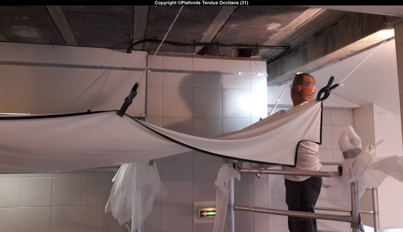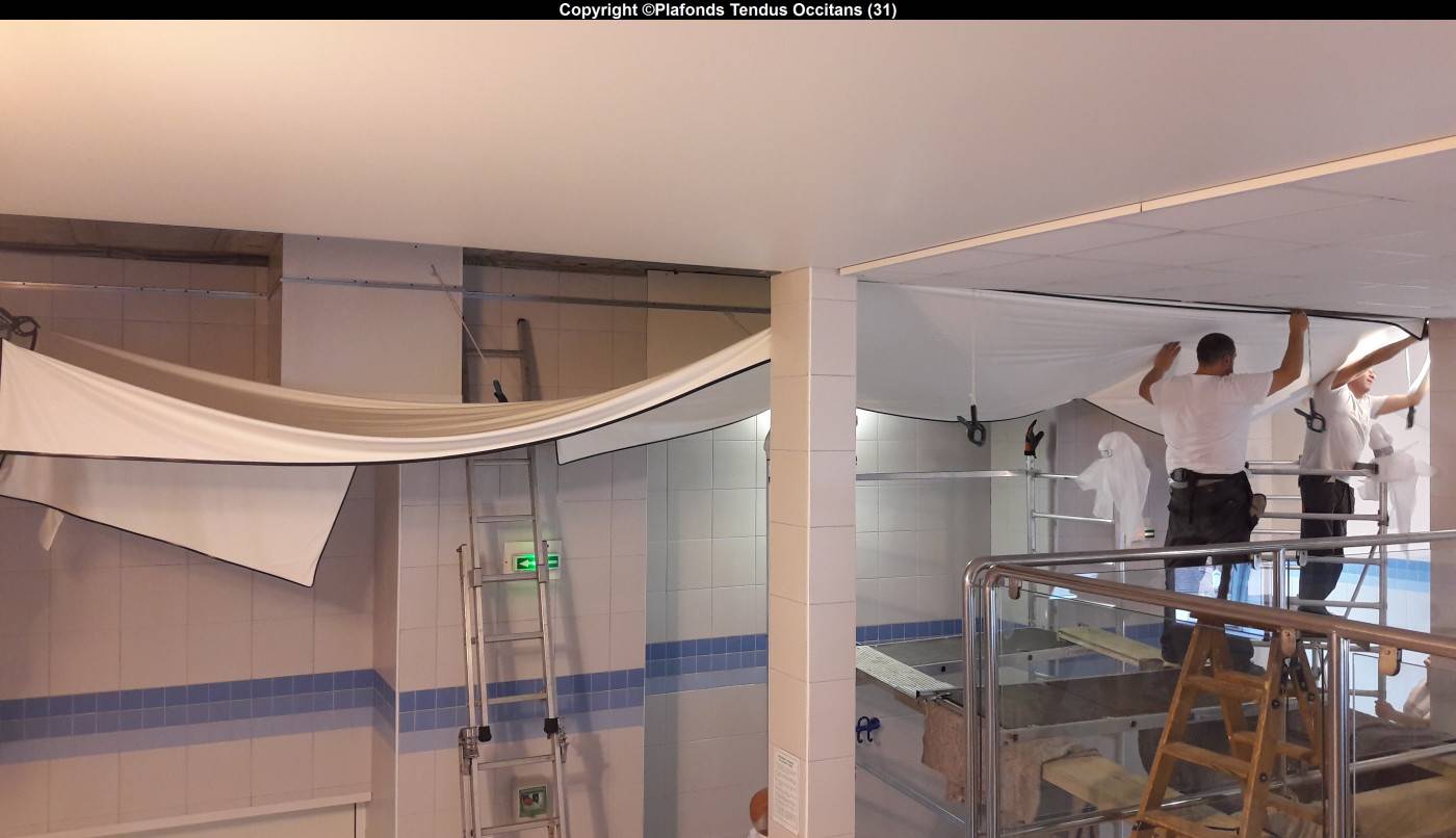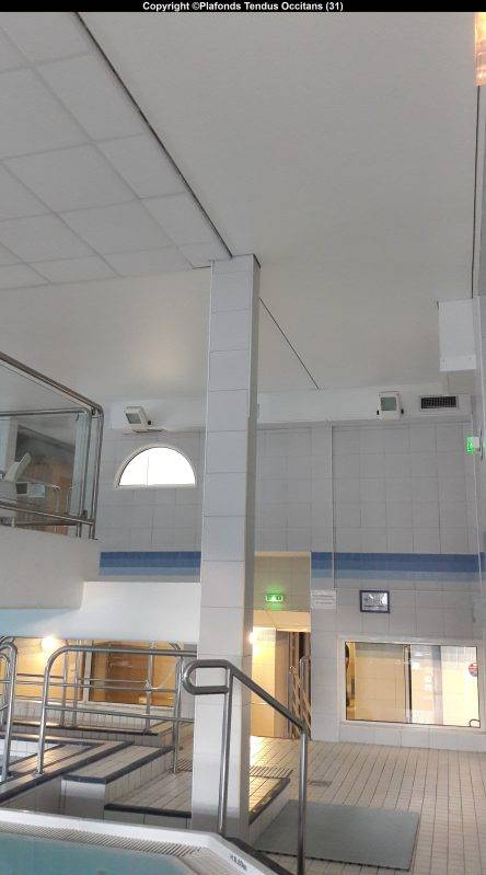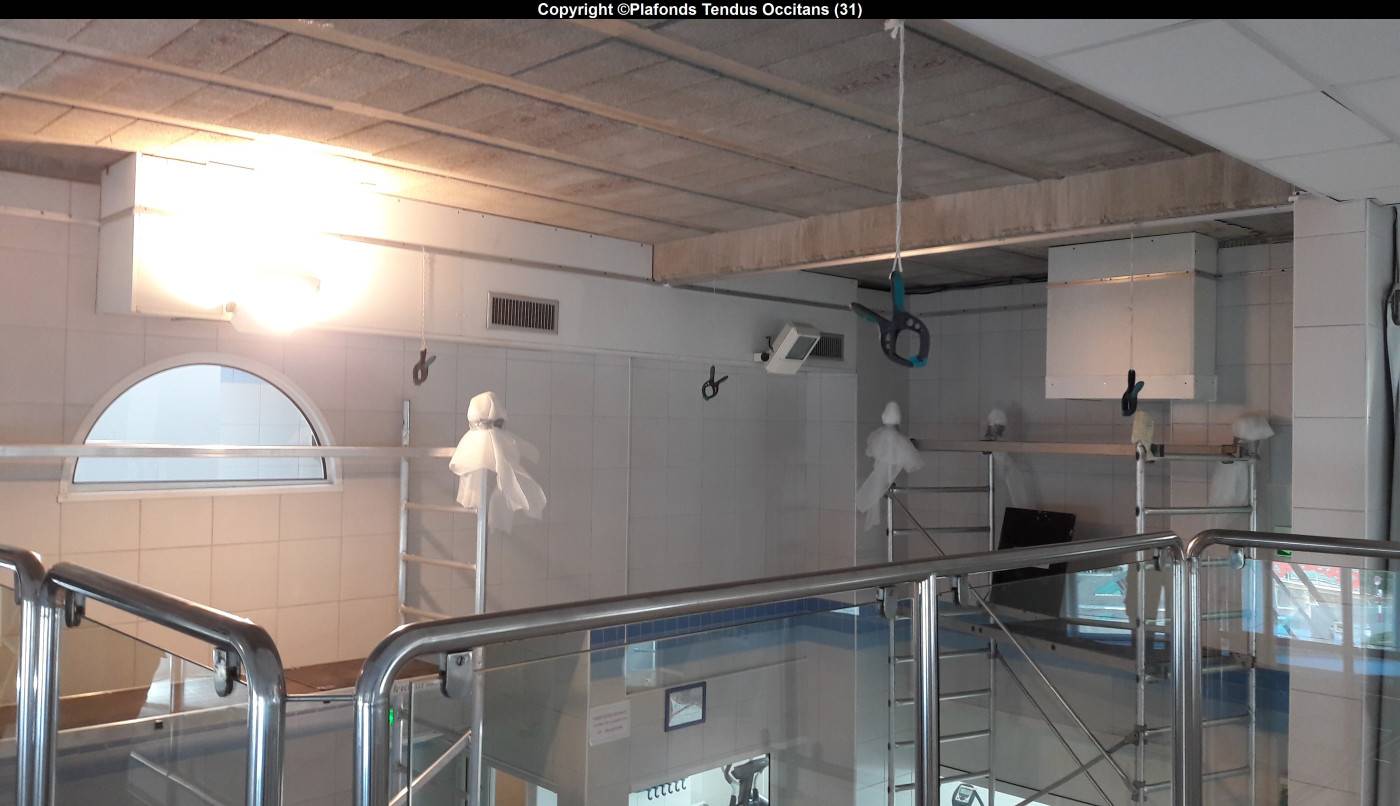Dans cette piscine intérieure (+ la salle d’attente attenante), nous avons remplacé 6 plafonds dont 1 mural :