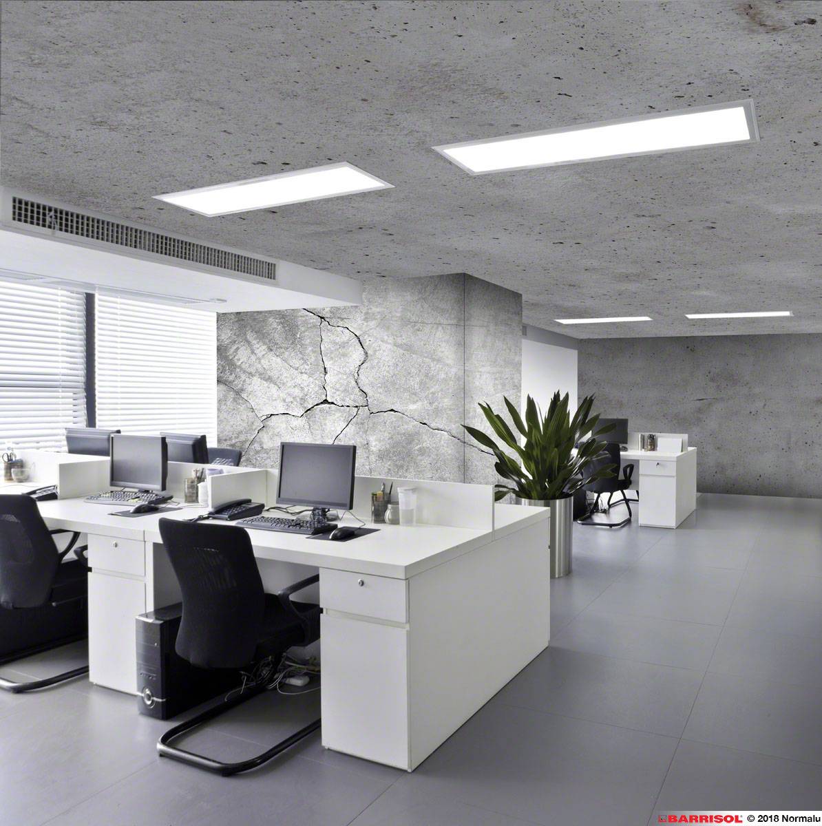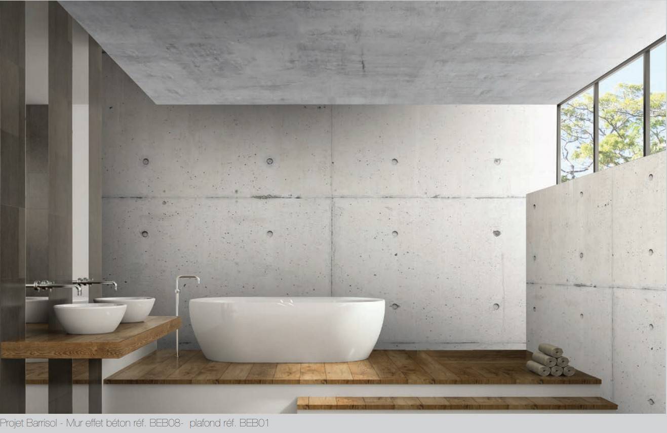 Cette prouesse technologique est, en effet, possible grâce à l'impression numérique BARRISOL de haute qualité avec différentes variantes telles que : bétons mouchardés, cirés, lissés, industriels ou branchés. Cet aspect peut même être imprimé sur une toile translucide rétro-éclairée, rendant le plafond béton « lumineux » : Un rendu spectaculaire, sans limite de taille !!