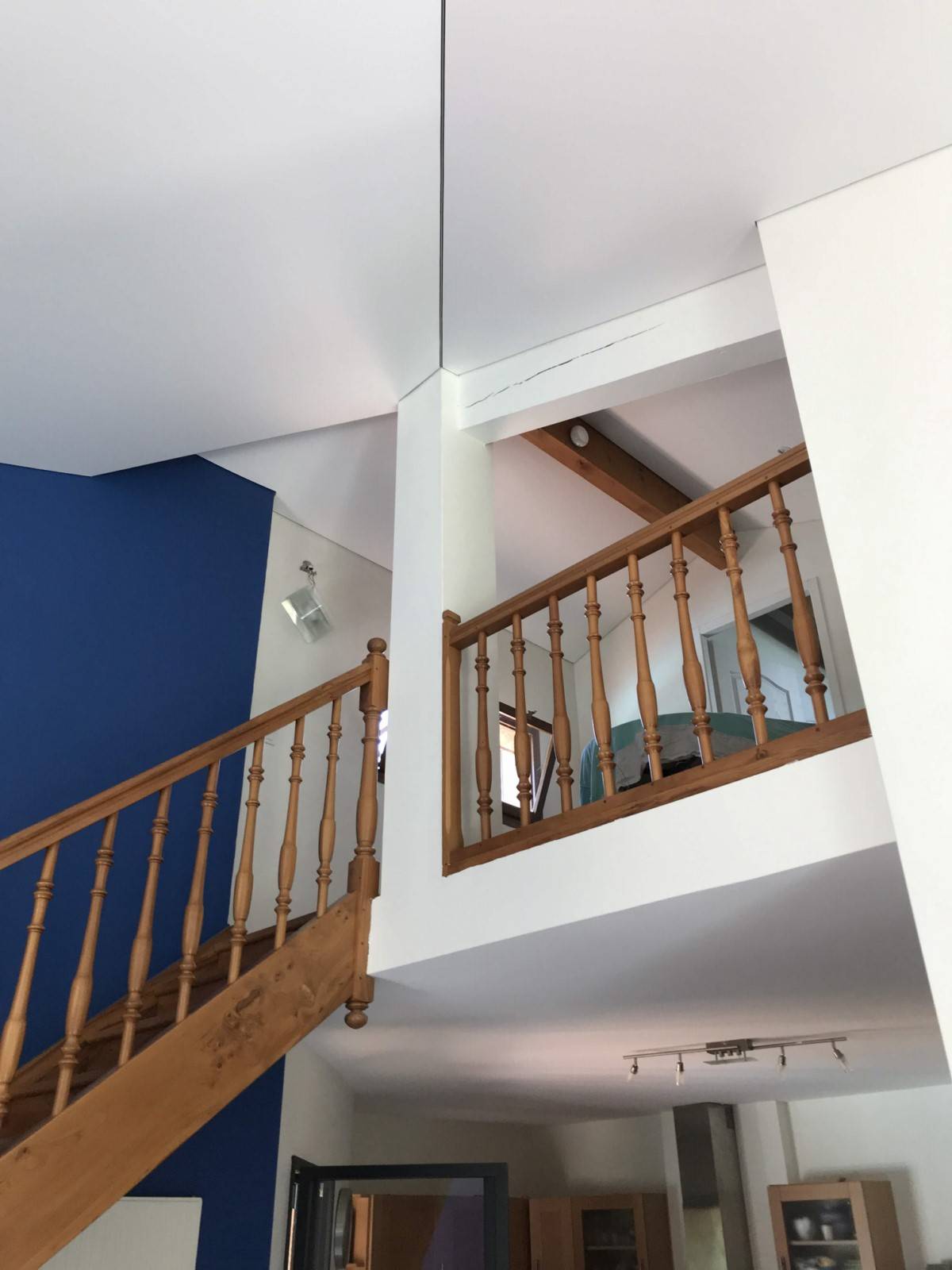Dans le chantier présenté ci-dessous, les clients ont choisi des plafonds tendus mats (blanc douceur) afin d'apporter de la luminosité à leur séjour. Un choix sobre mais efficace.