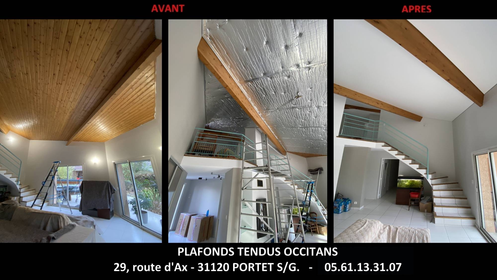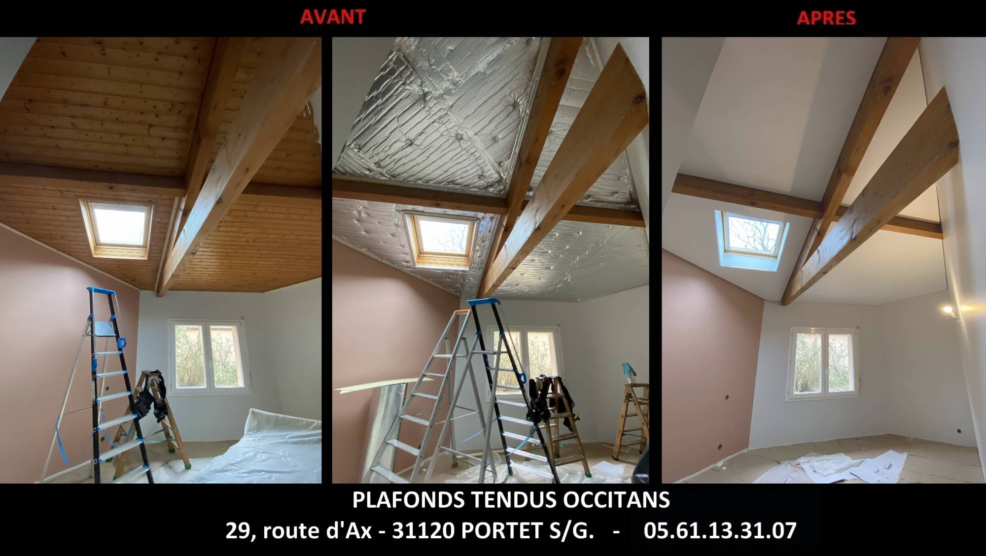 Alors, si comme nos clients, vous souhaitez recouvrir vos plafonds lambris, ou cacher des défauts tels que plaques de polystyrène, hourdis brut ou fissures etc... prenez contact avec votre artisan professionnel Plafonds Tendus Occitans, situé à Portet s/G. aux portes de Toulouse.