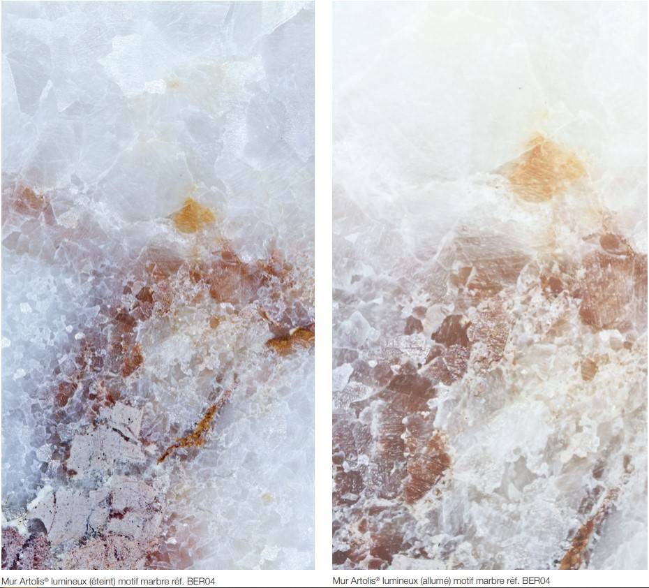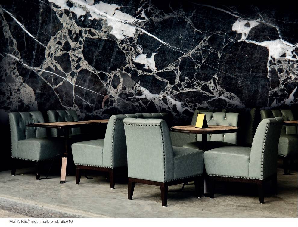 Plus souples et plus légères que le marbre, ces toiles seront le support idéal pour imprimer le motif de votre choix, en s’adaptant aisément aux contraintes techniques de votre intérieur.