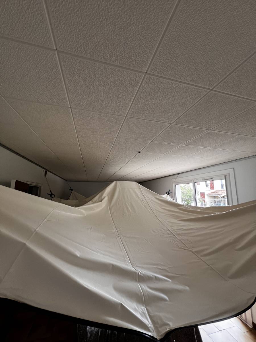 Vos dalles de polystyrène vous gâchent la vie ? On a la solution parfaite : le plafond tendu !