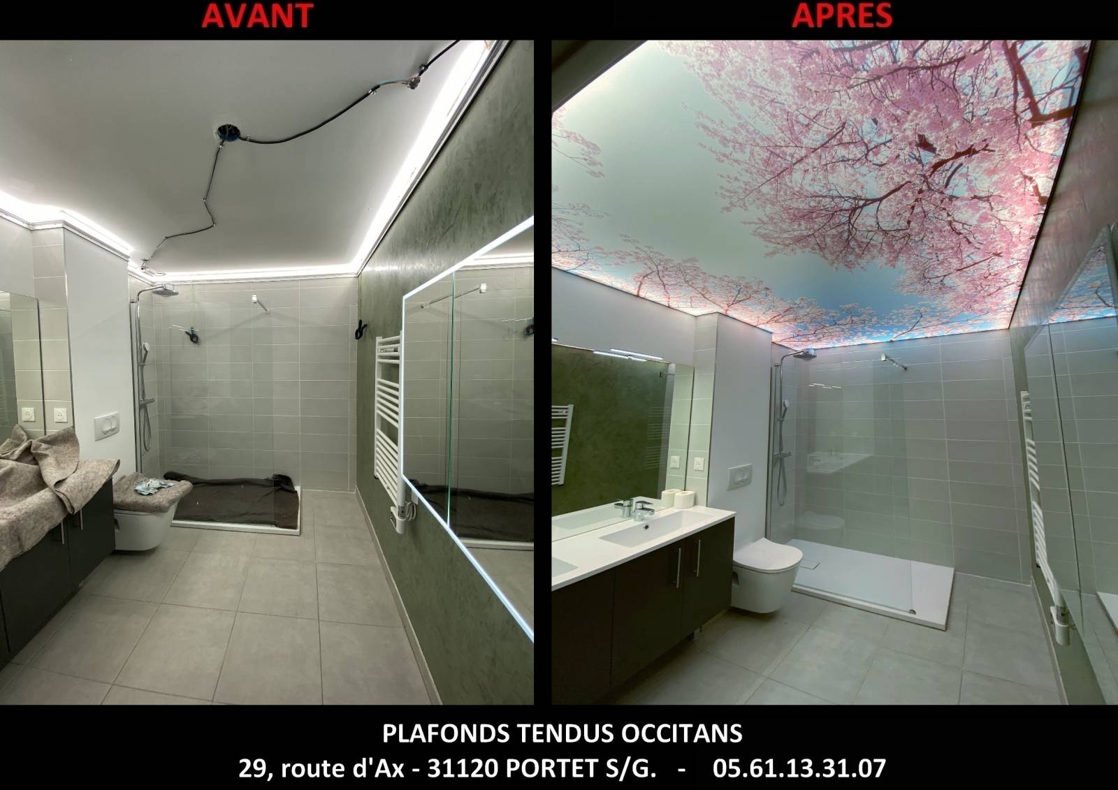 - plafond lumineux imprimé, pour une personnalisation totale de la salle de bains.
