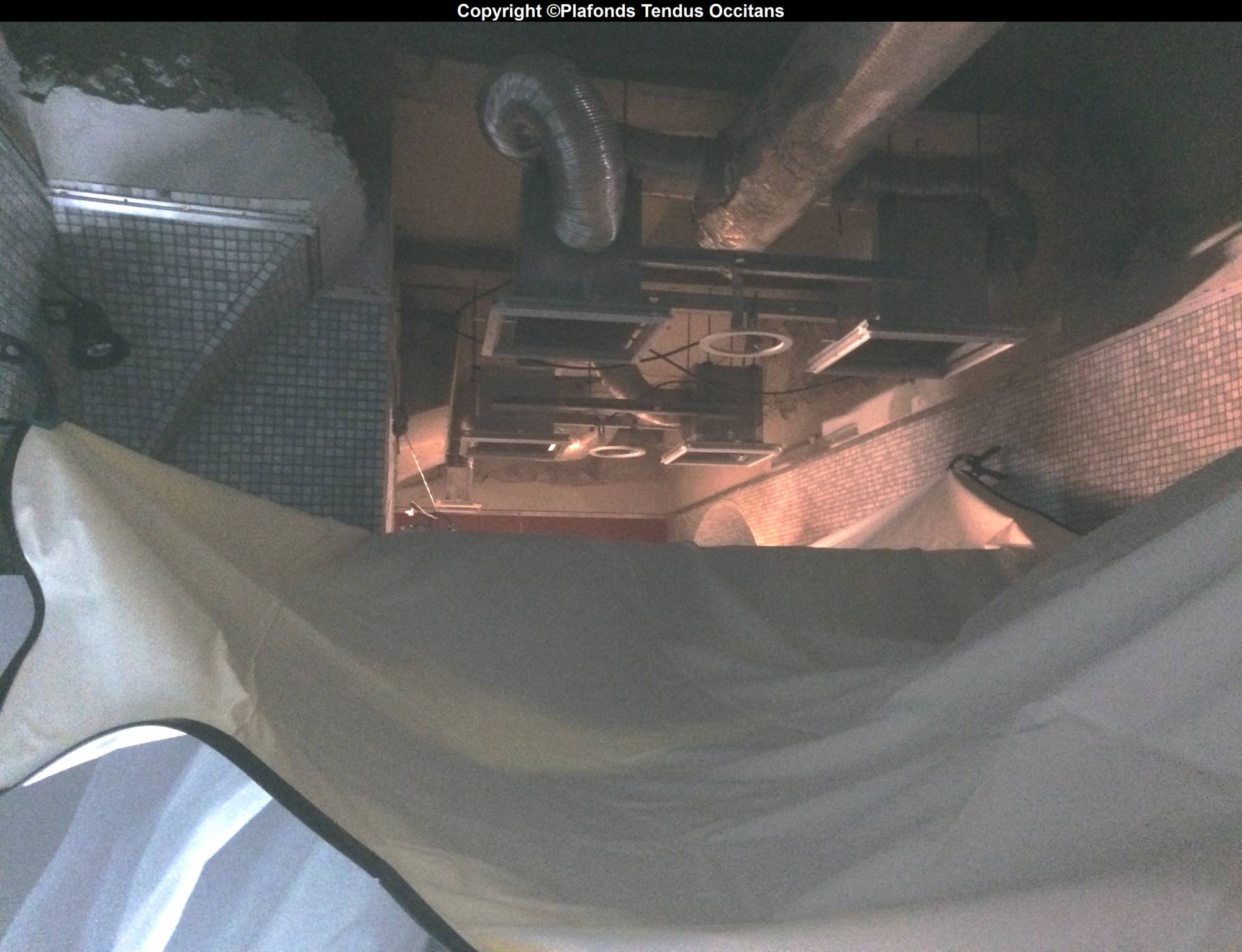 Récemment, nous sommes intervenus à CAUTERETS au Domaine des 100 Lacs (complexe hôtelier important) pour la pose d’un plafond tendu dans la piscine intérieure.