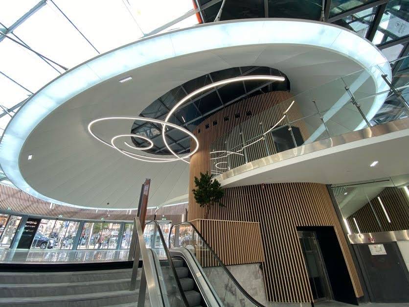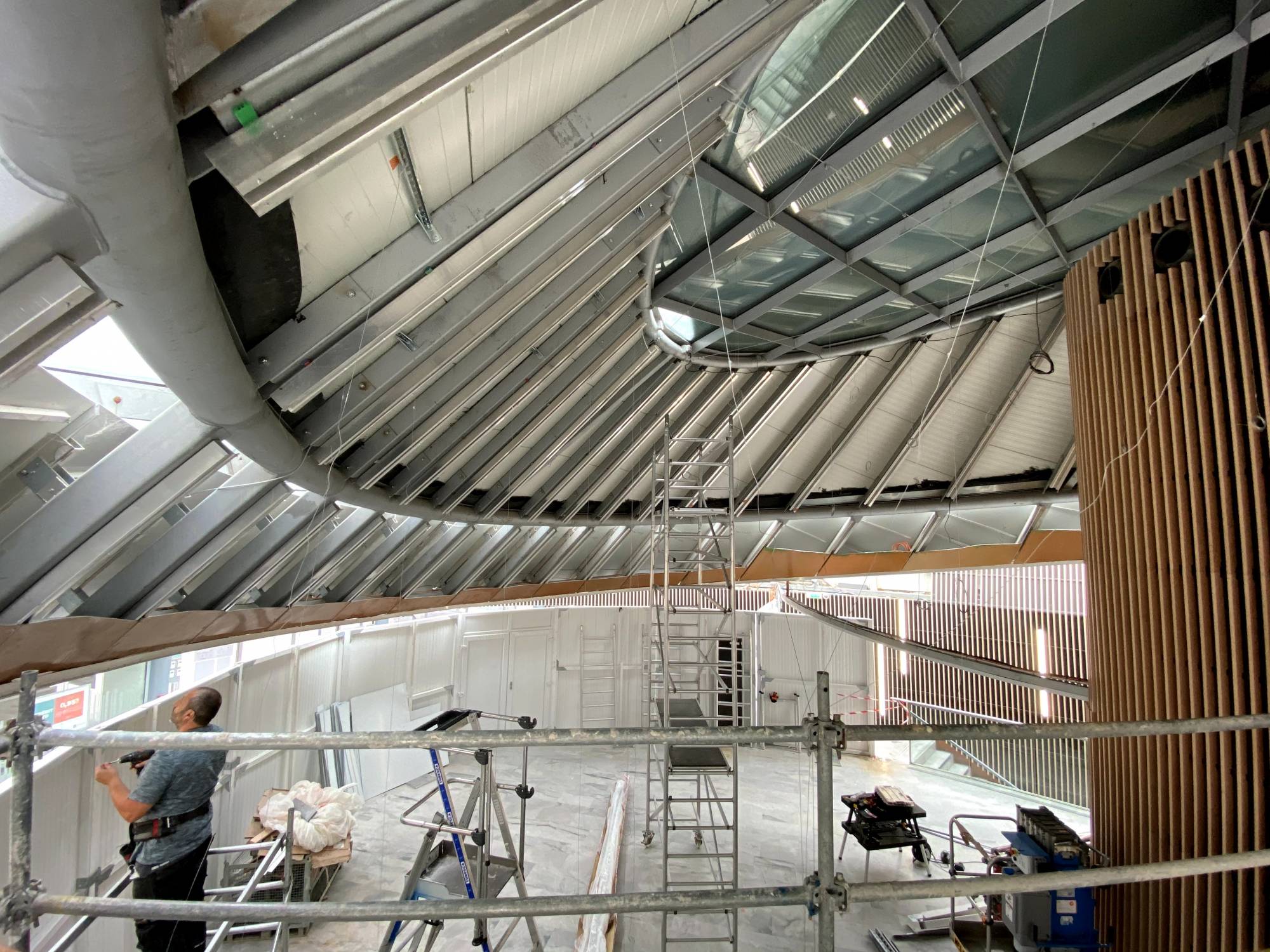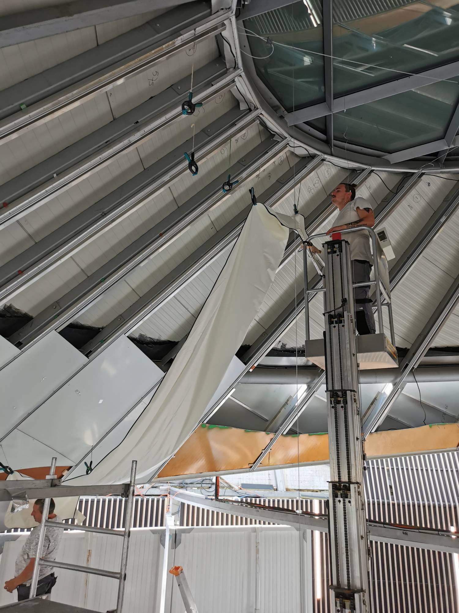 L'équipe complète de Plafonds Tendus Occitans a mis tout en œuvre pour la réussite de ce chantier complexe, de par ses contraintes techniques, ses hauteurs variables et ses accès difficiles.