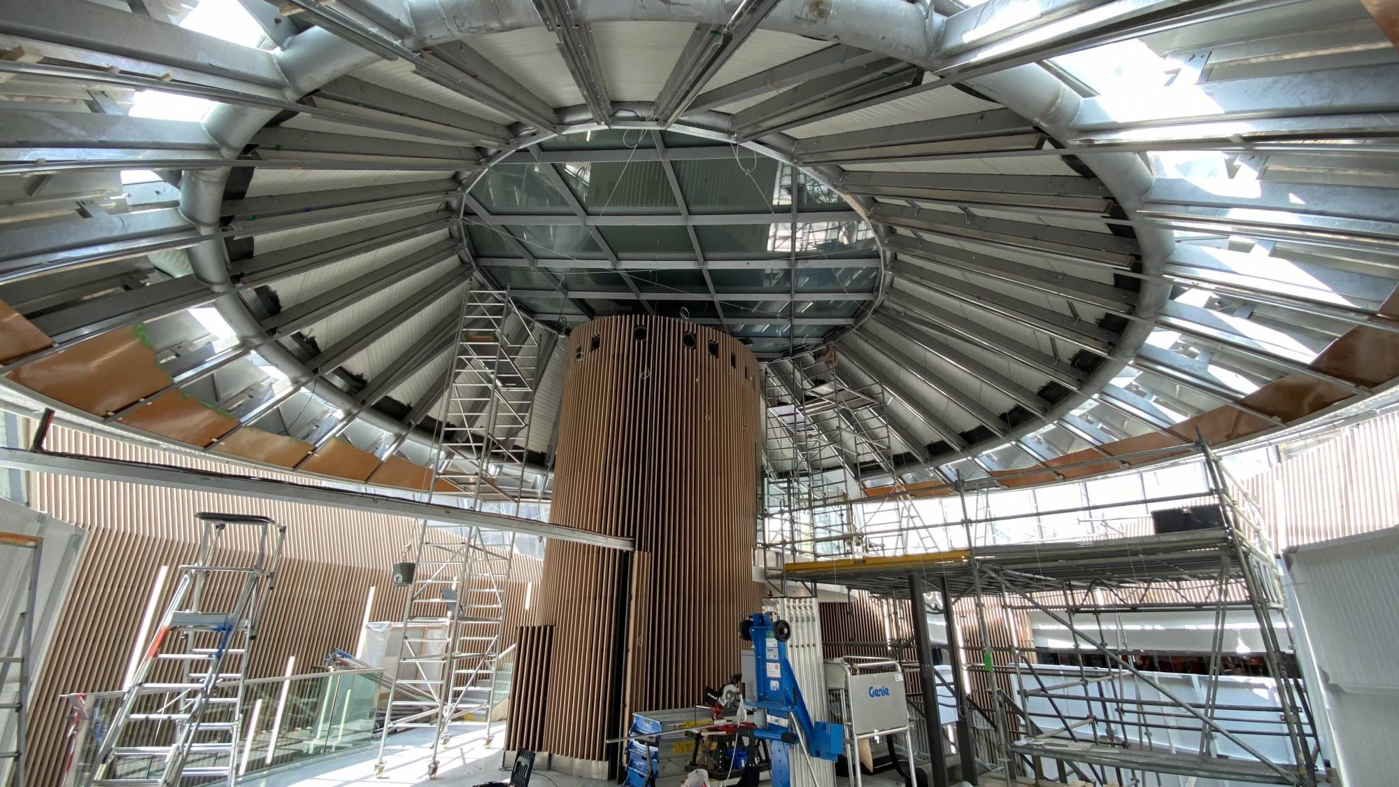 L'habillage intérieur du dôme n'a pu se faire qu'avec les plafonds tendus BARRISOL afin de respecter le cahier des charges. En effet, l'ossature ne pouvant supporter qu'un poids minime, les matériaux de type bois ou placo n'ont pas été retenus.