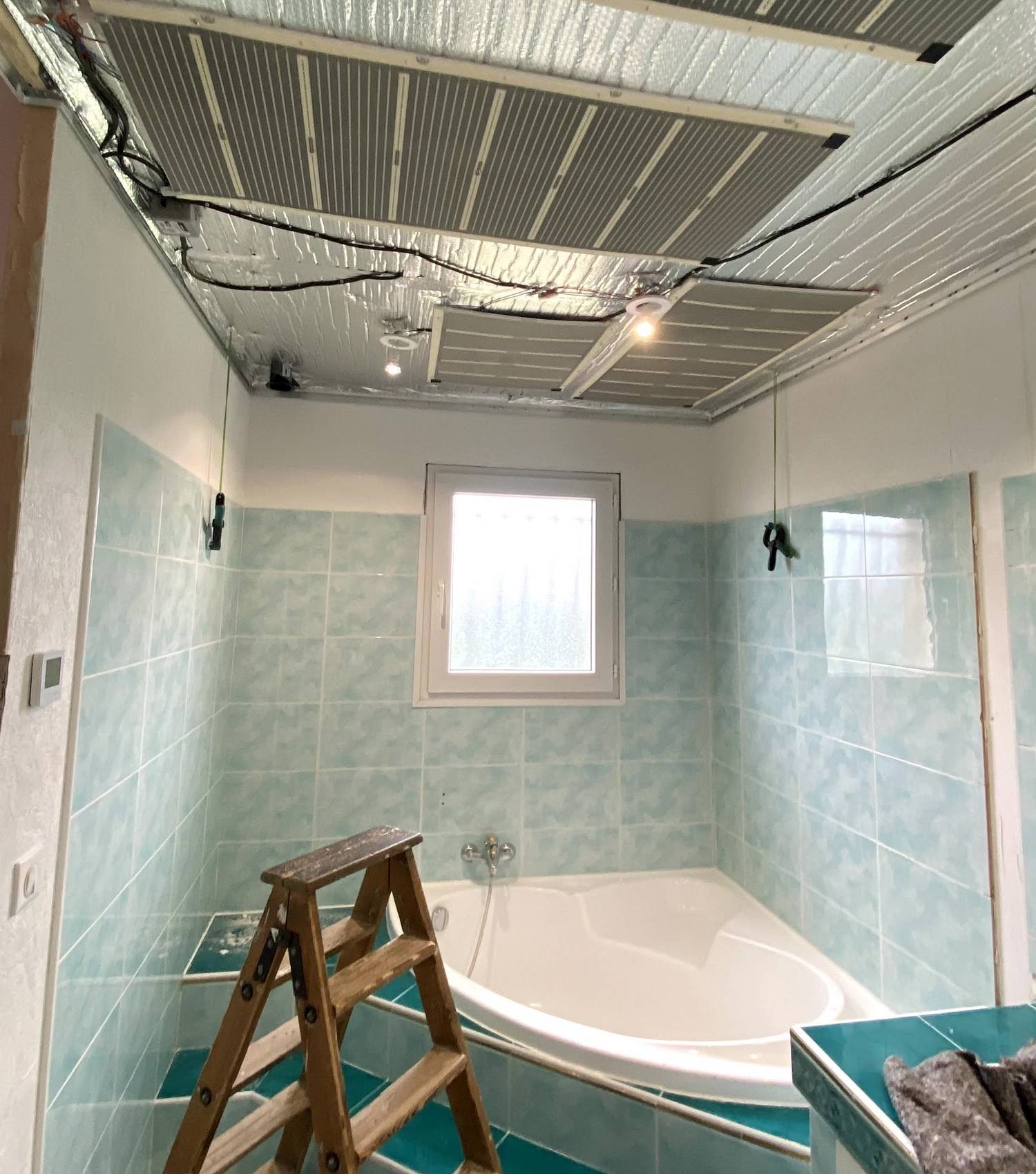 La salle de bains, pièce de bien-être où l'on doit s'y sentir enveloppé d'une chaleur douce, agréable et homogène, est l'endroit idéal pour un chauffage rayonnant.