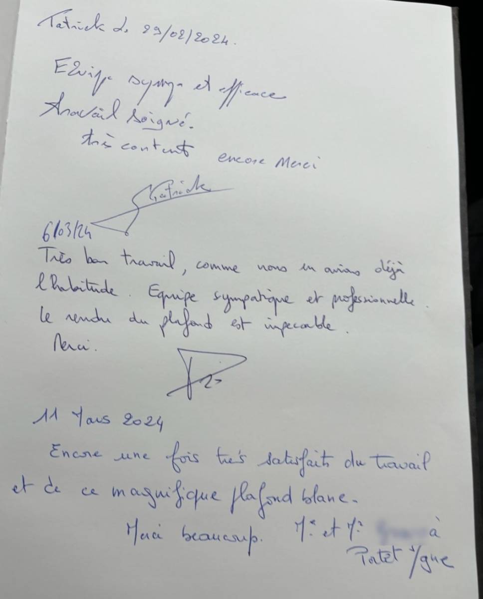 Toute l'équipe de Plafonds Tendus Occitans aimerait, simplement, vous remercier de prendre le temps d’écrire un avis sur notre livre d'or.